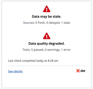 With data health tiles, stakeholders will get an at-a-glance confirmation on whether the data they’re looking at is stale or degraded. It allows teams to immediately go back into Explorer to see more details and investigate issues.